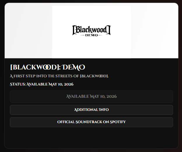The Demo section is where you’ll be able to access the Blackwood demo when it goes live.